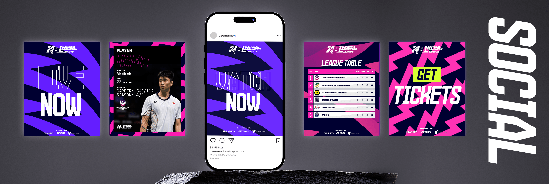 The rebrand delivered a bold, high-energy and contemporary identity designed to reflect the NBL’s ambition to redefine the badminton experience in England. Through a flexible visual system, vibrant colour palette and confident typography, the brand was built to support dynamic presentation, digital-first storytelling and consistent communication across platforms.